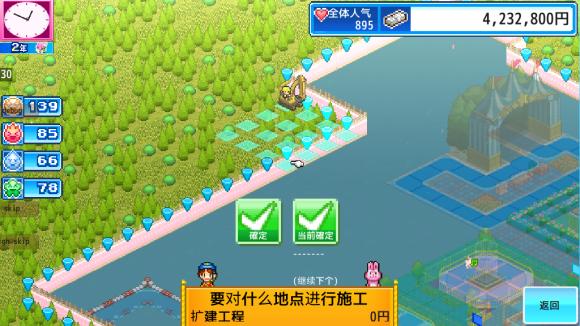 通过向园内放置各种设施让游客产生情绪,可以获得点数。若是举办季节活动,点数也会更容易获得