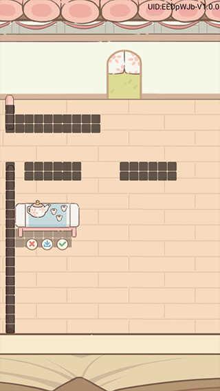 5、购买后的家具拖动到合适的位置放置,点击对号即可,黑色的区域代表已经被占用。(长按场景中的设施就可以改变位置)