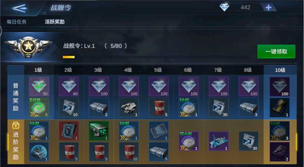 完成日常任务可获得活跃度,活跃度达到一定等级可以领取奖励,购买战舰令可额外获得更多丰厚的奖励哦;