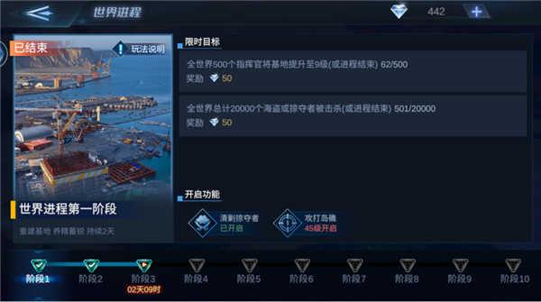 一共分为10个阶段,每个阶段都有时间限制,需要全世界所有玩家共同努力,迈出争霸海洋的第一步