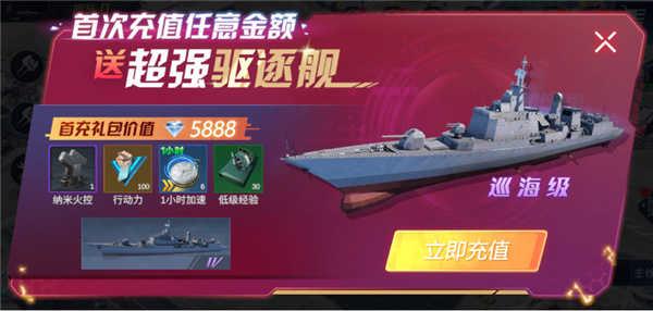 首次充值任意金额送紫色驱逐舰-巡海级(温馨提示:部分活动礼包不计入首充,请注意哦~)