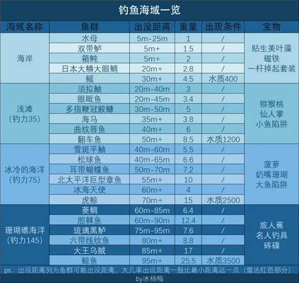 无论你甩出钓钩的力量多低,钓鱼时至少都能甩出5m的距离(例如甩钩力量为20时去珊瑚礁海域,还是能甩到45m的位置)