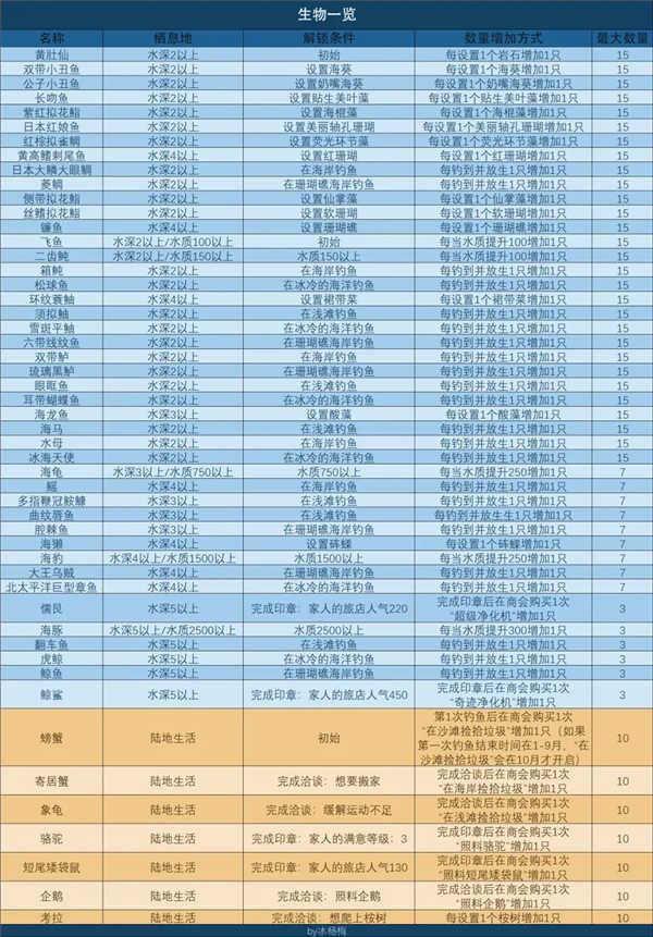 生物魅力通过解锁新的生物和增加生物数量增加,生物魅力是有上限的,当你解锁了所有生物且所有生物的栖息数量都达到上限时生物魅力会达到5053,生物的解锁和增加方式请看生物条目