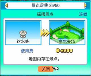 本作挺人性化的一点就是,你获得了新的设施你可以直接在景点辞典里看到那个设施能否和你现在已有的设施组成新的景点,不需要猜,且你设置设施后点击设施查看详细信息也能看到该设施能组成什么景点,赞!