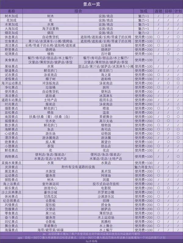最后附一张虽然有了这个人性化的功能可能不太需要,但我还是做了的每个设施相关的景点的表格