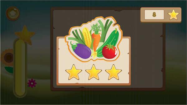 4、将所有蔬菜合成完成后,也就是左侧的进度条满时,就挑战成功了,可以获得相应星级的星星数量;