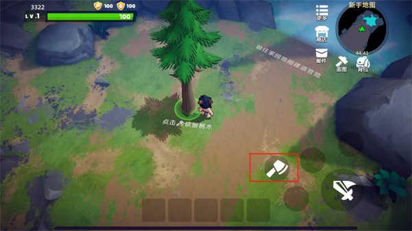 6、制作好的工具可以用来收集材料,如下图,小编制作啦一个斧头可以用来砍树;
