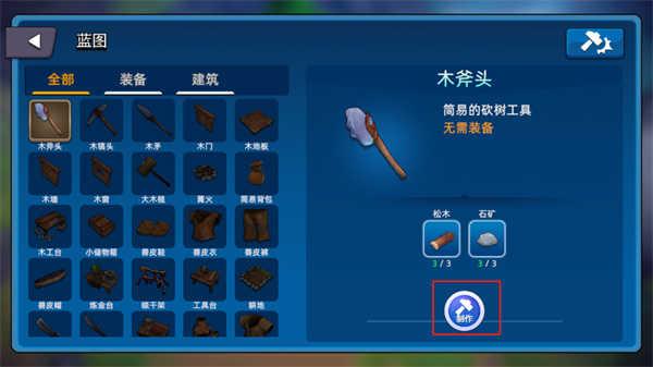 4、玩家收取到一定数量的材料,玩家可以点击蓝图来制作工具;