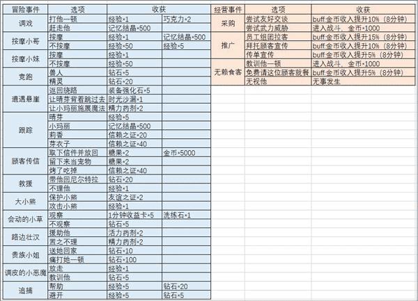 六、冒险事件/经营事件选项整理