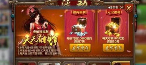 三十块钱一张的月卡,购买的话是送三百元宝,然后每天登陆是一百元宝,注意买了后要天天登陆