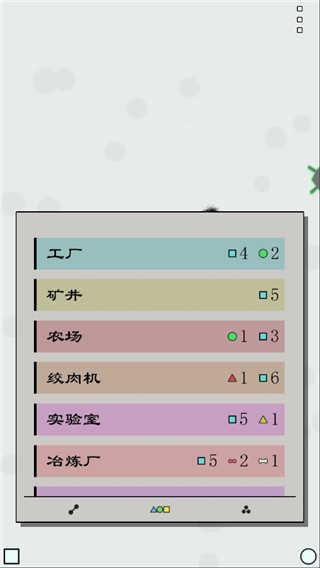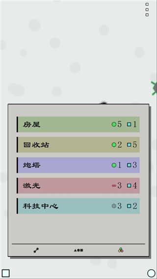 该图中,第一个姑且称它中枢,所有的建筑都必须点击它之后再点击屏幕下方的+才能选择建造,图中的这个面板就是点击+后弹出的,