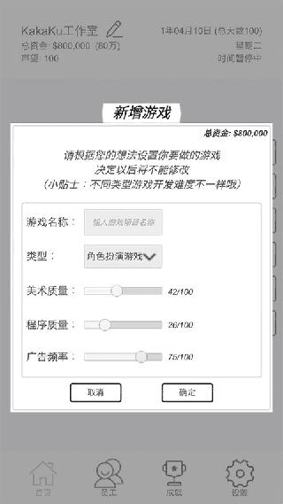 5、资产过百万了,就可以做其他的游戏了,动作游戏最赚钱,策略游戏的热度最长,并不是每一样都100就是最好的。