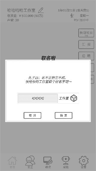 1、进到游戏后,先取个公司名,一开始进游戏有50万金钱,还有礼包送10*2万。