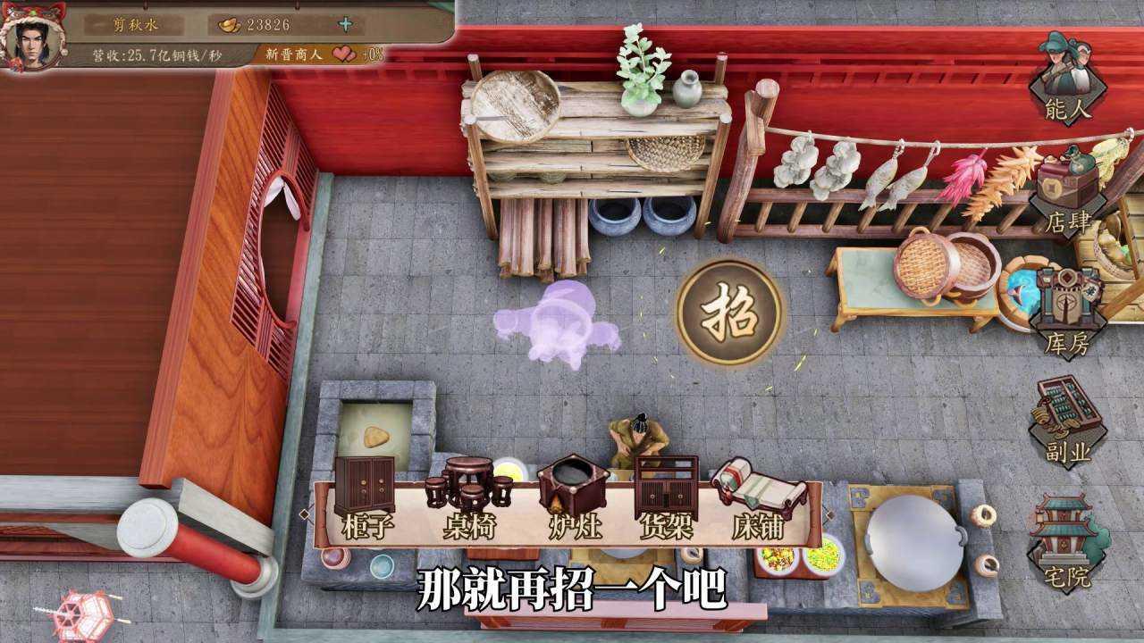 4、摊位通过烹饪来接待顾客,每次接待可消耗顾客钱包(血量)并获取资金,接待所消耗的顾客钱包(血量)受到对应使君悟性影响。