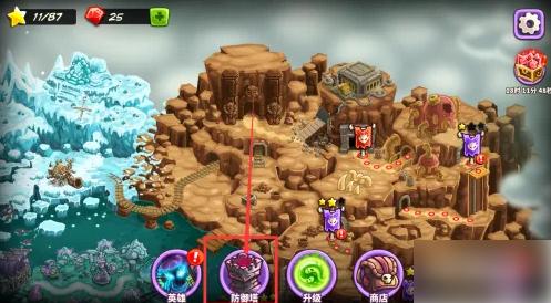 打开游戏后,点击下方的【防御塔】选项图标。