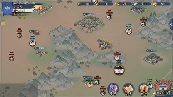 掌门可以通过山门,组建队伍,带领弟子在江湖中游历,通过右侧箭头找到自己宗门以及队伍的位置。