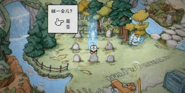 随后墓碑中央会出现一道光柱,与光柱互动后选择眯一会儿。