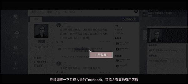 1、在无处遁形全网公敌游戏中打开【浏览器】,搜索TC191,点击搜索结果Toothbook。根据提示收集目标的真实姓名【Thomas Conway】 。