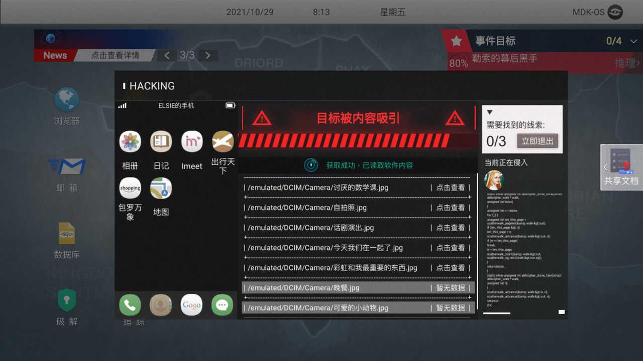 3、你作为黑客,将卷入到各种神秘的事件中,寻找线索才能够完成所有任务