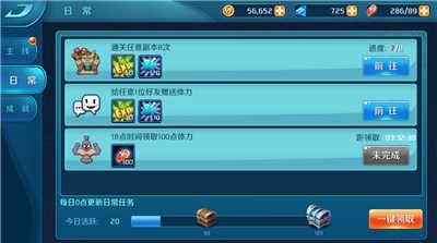 当主线任务到达一定等级卡住之后,后面可以把重心放到日常任务,因为这将是以后每日的必修课,且奖励丰厚,性价比很高。完成一定数量的日常任务,还可以领取下方的活跃奖励,所以小伙伴千万不要忽视日常任务哦。