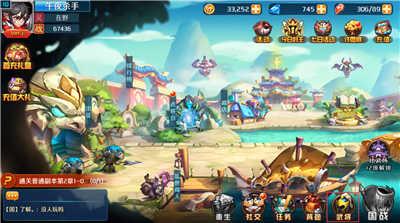 首先,让我们进入游戏首页,可以看到一幅有山有水有农家的和谐画面。如果您是小白玩家,当前几级的新手引导结束后,可能迷茫不知道接下来如何推进了。那么可以把目光锁定到图中的‘任务’,根据任务系统的提示,您就不会再迷茫了,升级推进都不在话下。
