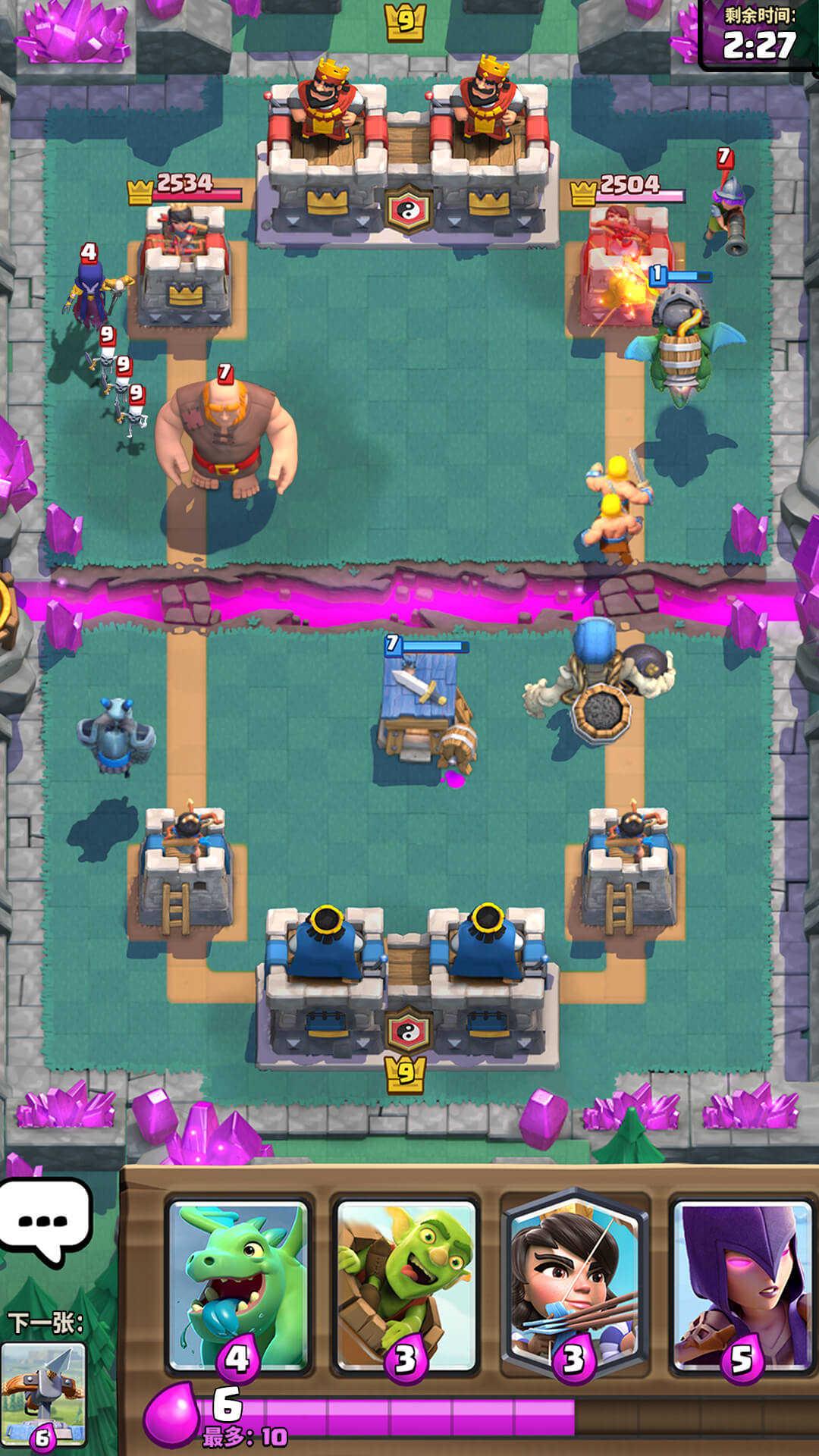 飞龙宝宝:4滴圣水解锁,生命力较高,可以攻击地面和空中目标。一般对付武神或者亡灵这种,我会用飞龙宝宝。如果没有这个卡组的话,完全对空中目标有点束手无策。