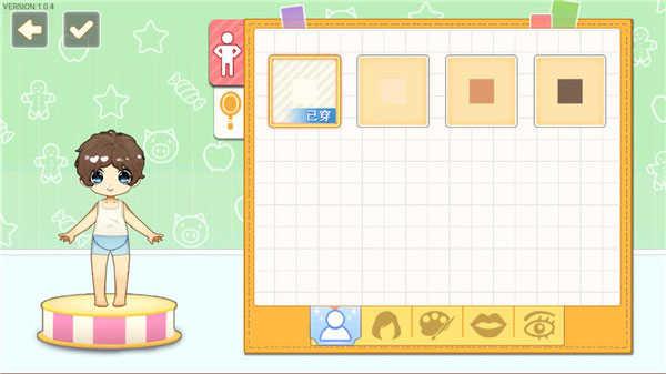 2、接着如下图所示:从肤色、五官、发型、到服装根据你的心情喜好进行选择搭配