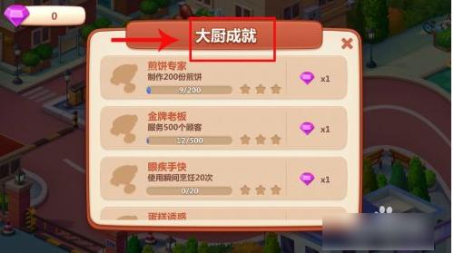 有一个【大厨成就】,完成后,可以获得钻石,为后续的升级特别有帮助