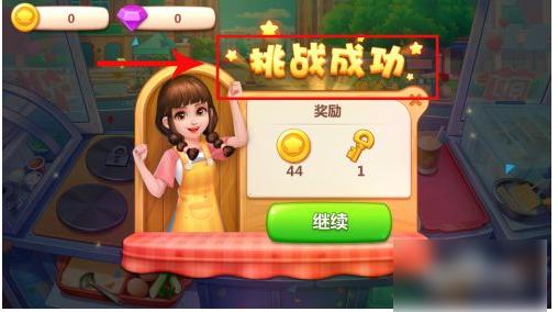 满足客人需求后,就可以挑战成功,之后,获得【金币】和【钥匙】后继续挑战