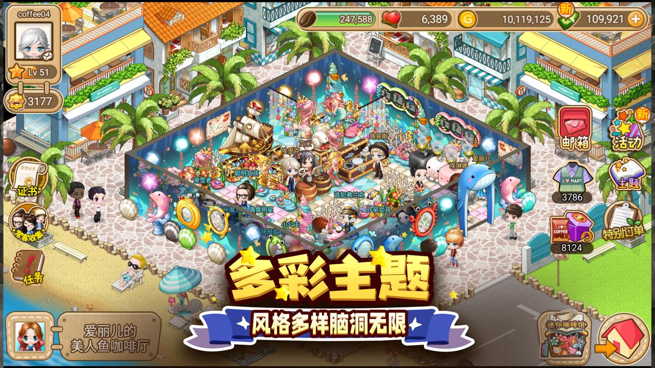 3、开去一个咖啡厅,并且游戏中的各种道具,玩家们都可以随时的收集游戏中的各种物品,玩家们都可以随时的进行购买。