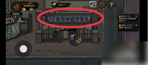 第一步,在地图上找到“好安心保安公司”,然后走到“好安心保安公司”前面。