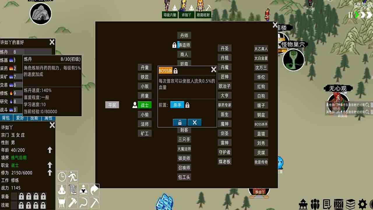 假修仙模拟器是一款采用沙盒玩法的修仙模拟游戏。假修仙模拟器玩家进入游就是在上帝视角指挥宗门内的弟子进行炼丹、炼器、交易、采药、采矿、战斗、修炼、研究或学习功法、战斗以及招募弟子等等,并且目前为玩家提供了30多个职业、30多种功法、40多种装备词条,这些都是可以随意进行搭配,然后打造出完全属于你的最强流派。
