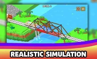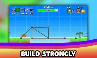 一个可以给玩家带来真实桥梁建造的模拟小游戏。这个游戏里有很多建桥游戏可以玩。每个玩家都可以在这个游戏中搭建桥梁来完成更多的任务,也可以在这个游戏中进行更多的挑战。每次建造完成后,更多的挑战等待着玩家开始。通过物理定律,可以用最少的钱建桥,让车顺利过桥,这就考验玩家的物理知识了。