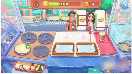 挑战方式是:以关卡的方式同样的玩法,继续煎饼子和豆浆给客人