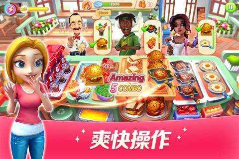 不断解锁新餐厅提升你的烹饪技能;闯过不同目标的关卡获得奖励来翻新和建设你的餐厅。