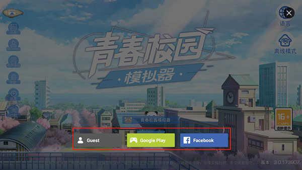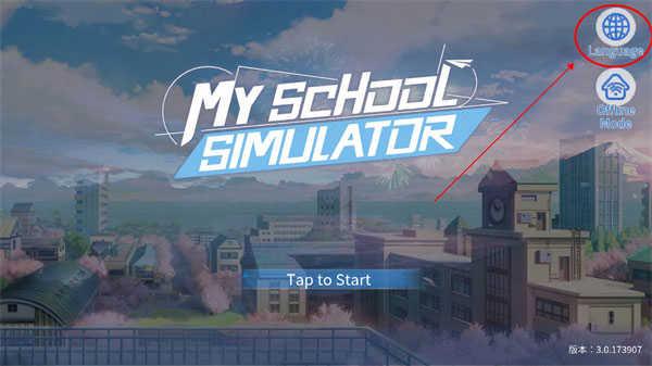 1、在青春校园模拟器(My School Simulator)登录界面点击右上角的地球图标;