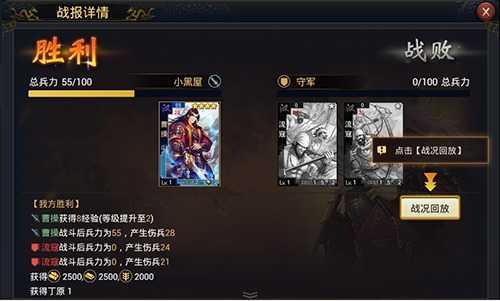 4、战斗结果显示,胜利并占据领地。部队到达目的地就会马上开始战斗,如果双方实力相差悬殊,战斗会马上结束,己方胜利就可将目的地占据,失败就会损失较多兵力,而无论胜负,武将都可获得经验。如果对战双方势均力敌,那么战斗结果会暂时显示“平局”,并在5分钟后进入下一轮对战,直到决出战斗胜负。玩家也可以在此5分钟之内增派援军到达目的地,帮助己方部队获得胜利。
