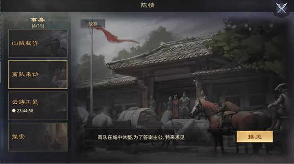 在每日的陈情之中,玩家除了会遇到不同的工匠,并通过他们来帮助自己提升宝物之外,还将会有探索以及营救商队等新类型的陈情。在这些陈情之中,玩家可能获得培养宝物所需的材料,也有可能触发新的陈情事务。