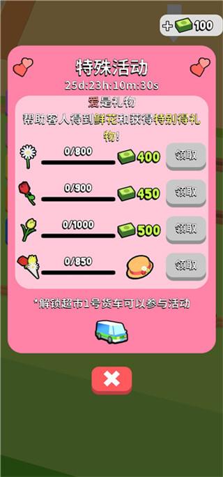 1、首先我们进入我的连锁超市游戏,第一步就是先解锁一些货架,开始售卖产品;