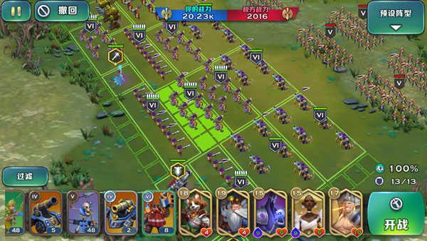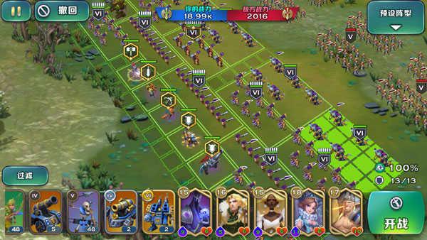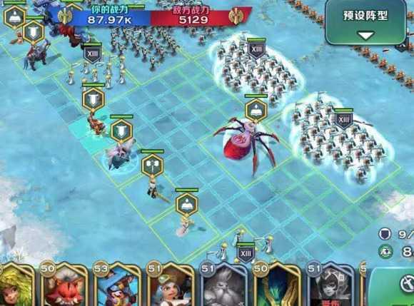 2、这个是越万神开城阵容,左边空位龟右边空位蜘蛛,记得艾莲娜用好撤退技能很容易集火。基本跟普通开城一样,但是这个阵容因为没车打的墙皮很少,但是牧师的奶却能帮忙把这个血量问题补回来。