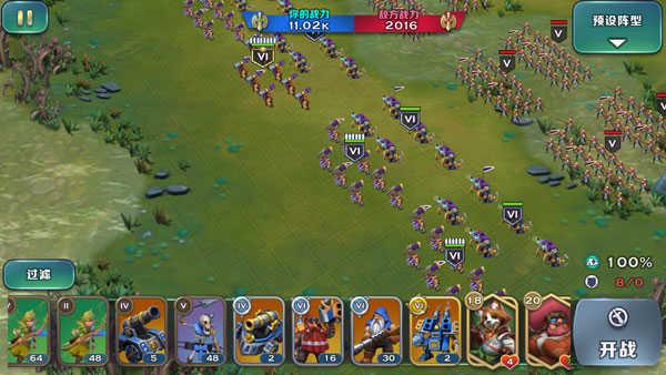 4、野外pk,毫无疑问爱莲娜骑兵流,目前蝎子和机甲都挡不住骑兵突击前排,野战pk基本就是比前排,前排崩了立马gg。