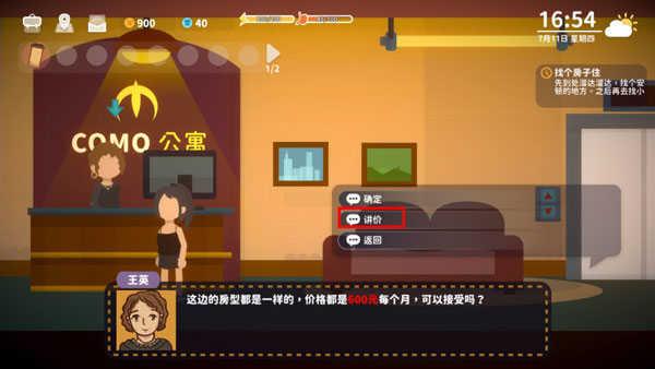 4、讲价是回合制模式的,胜利后就能以更低的价格租房了