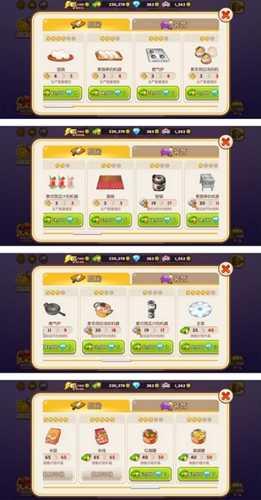 3、在游戏中玩家们还可以使用金币和钻石去升级我们的制作厨具,制作厨具升级了之后我们就可以同时制作好几个食物,大大的缩短了客人的等待时间,这样我们就可以更加快速地去完成任务并且过关了。