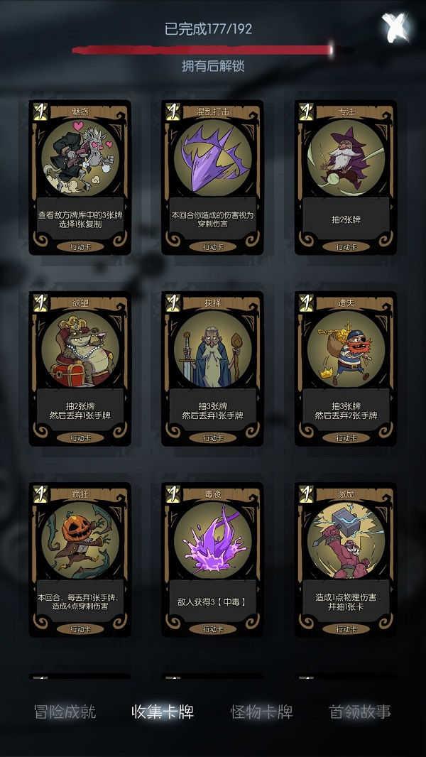 修女:左下技能,回满血(战斗4次后才能继续使用),这技能还不错,打开背包,开局送的祈祷卡,呃。。。前期打小怪还行,打boss或某些强怪是真没戏,所以这里推荐: