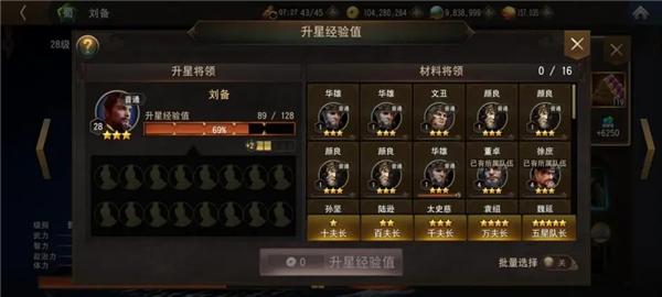 星级选择上,则可以考虑是否是前中后期都会用到的角色(也就是资源浓缩原则)除了强力武将(或者xp角色)以及部分超越角色,可以拉满,或者是保留,剩下的武将则可以考虑卖出置换资源。而狗粮可以通过抽取和副本获得,以及碎片合成获得。