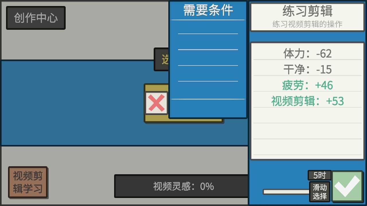 做完一天总监之后,回到家做炸鸡腿,回满体力,洗干净疲劳,拉粑粑,然后打开电脑,刷属性与生活熟练度(顺带白嫖游戏值),刷一次5小时,一次3小时,然后整理状态,等商业楼开门,进去接着打工(呸,当总监)