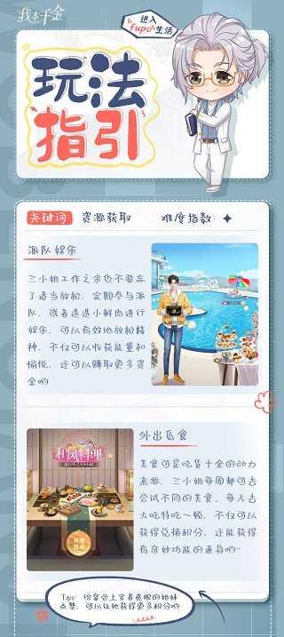 美食可是吃货千金的动力来源,三小姐每周都可去尝试不同的美食。每天去大吃特吃一顿,不仅可以获得兑换积分,还能获得有奇妙功能的道具。