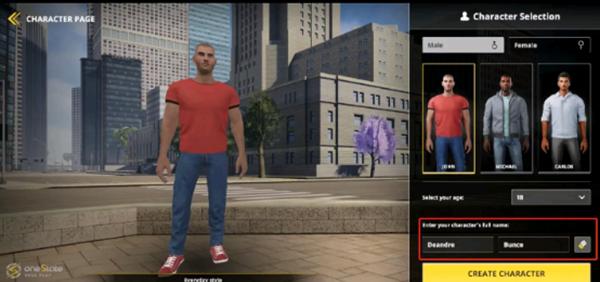 3、进入游戏后,创建角色,选择性别、年龄等,选择好点击“create”进行创建。