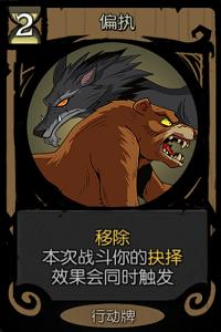 3、偏执:目前版本狼人只有三张抉择卡,一张狂怒流核心,一张万能过牌+行动,还有一张抉择路口用于无限印卡。所以如果走狂怒流的话请务必找一张偏执,然后第一回合使用嗅觉检索发动,再接上突进过牌+行动力直接启动。(小编噩梦6的时候走狂怒流没找到偏执一样过关了,只能说小木匠真的是个狼人。)