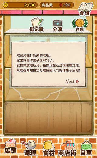 2、为了制作各式各样的甜品,首先呢,我们需要得到一份食谱。先去商店街逛逛,一切从采购开始吧;